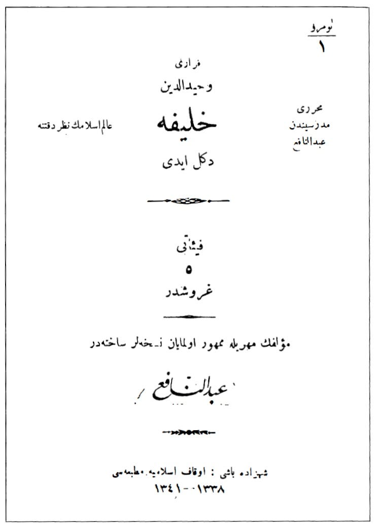 Kilisli Abdünnafi Efendi, Firari Vahideddin Halife Değil İdi Alem-i İslamın Nazar-ı Dikkatine, 1922. Bkz. İsmail Kara, Hilafet Risaleleri 5.